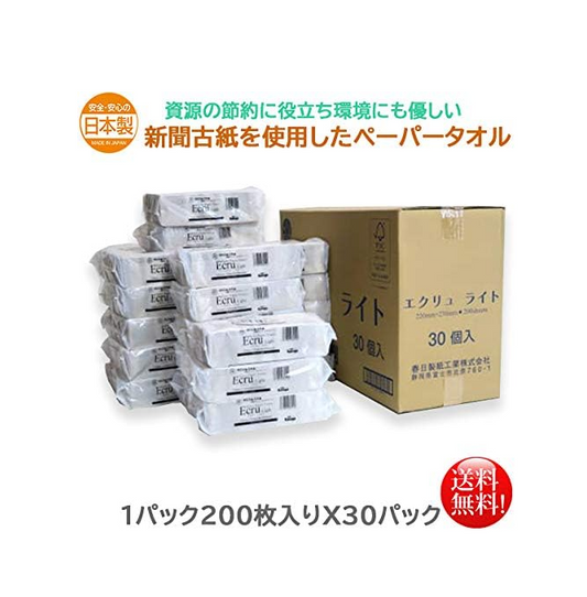 【ケース販売】エクリュホワイト ライト ペーパータオル 中判 200枚×30パック