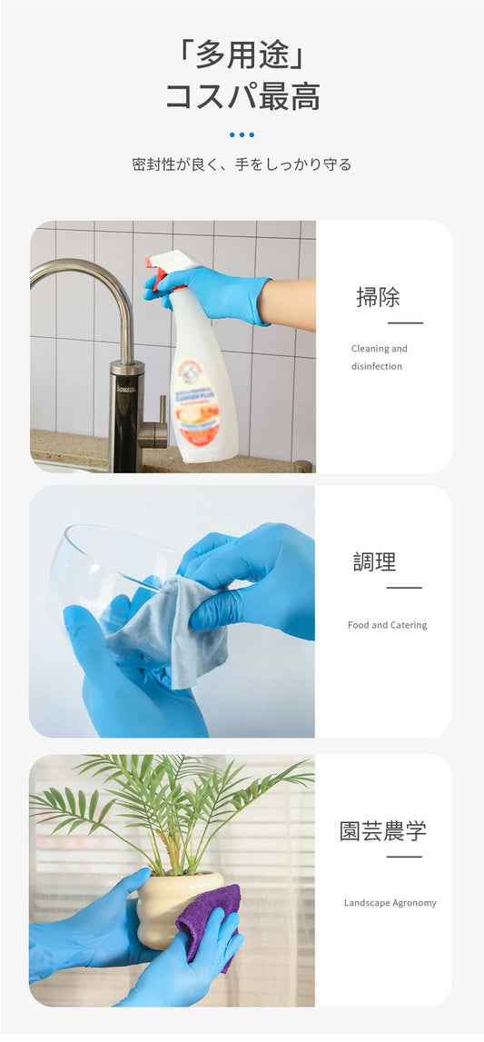 手の衛生を確保しながら快適な作業を。使い捨てニトリルグローブで手軽に防護しよう。左右両用のため使用簡単で経済的 パウダーフリー 掃除