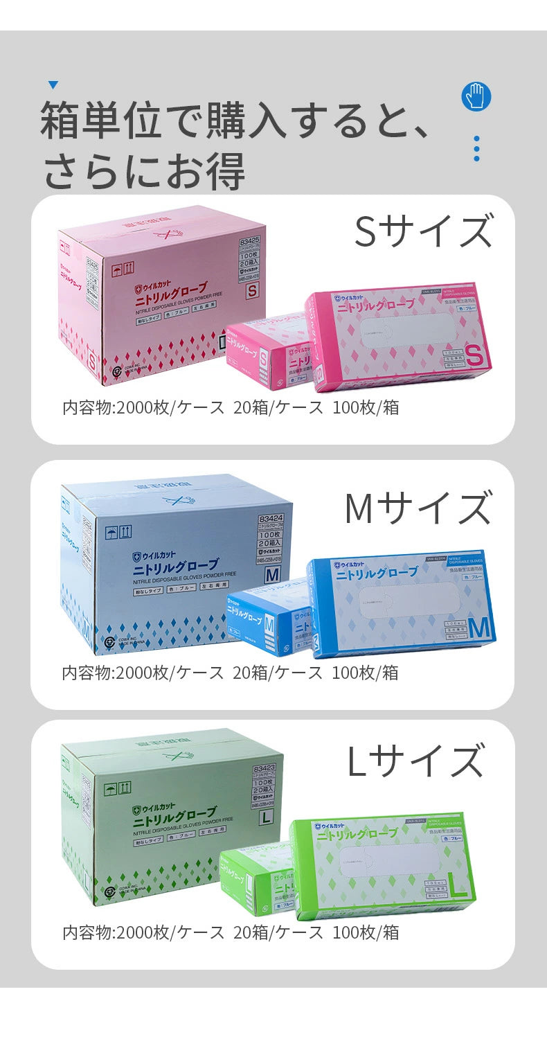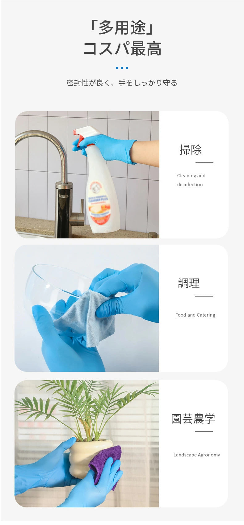 ニトリル手袋 粉なし 使い切り 使い捨て 手ぶくろ グローブ ポリ塩化ビニール 衛生 介護 老人ホーム 病院 作業 レジ 園芸 美容 S/M/L 安全 清潔 手軽 簡単装着